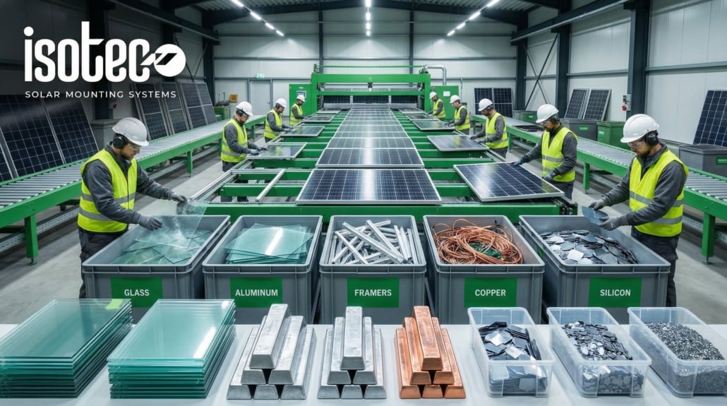 Solar panels glass, metal and plastic It is divided into main components such as. This process allows each material to be processed separately.