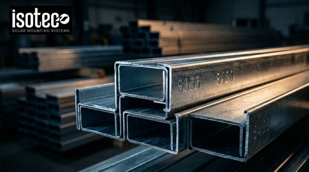 ISOTEC Solar olarak tasarım ve üretim süreçlerimizde çelik sınıfı seçimini temel bir tasarım parametresi olarak değerlendiriyoruz. Uygulama aralığı olarak S355 ile S450 arasındaki sınıflarla çalışıyoruz; proje gereksinimlerine, zemin koşullarına ve yüklenme hesaplamalarına göre uygun sınıf belirleniyor.